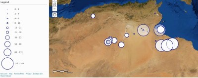 The following is a map of the geographical distribution of Ibāḍī scholars in the Maghrib from the 1st-15th centuries hijrī. I posted an earlier map of this data in the Gephi program, but the volume of scholars in the same location was not weighted. This graph shows the volume of scholars in the same location according to size and I think it is very telling about the dominance of certain geographic regions. The program was created using the free, online version of ArcGIS (http://www.arcgis.com/features/)