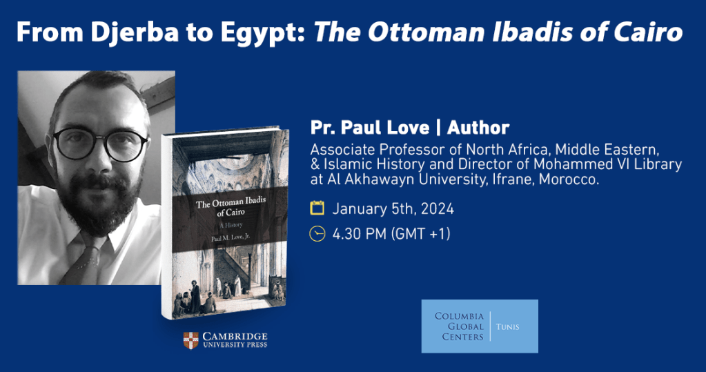 I am delighted to have the opportunity to share some of the research behind my most recent book, The Ottoman Ibadis of Cairo (Cambridge Univ Press, 2023) at Columbia University’s Global Center in Tunis, Tunisia. If you’re in the area, please join us at 4:30PM on Friday 5 January.