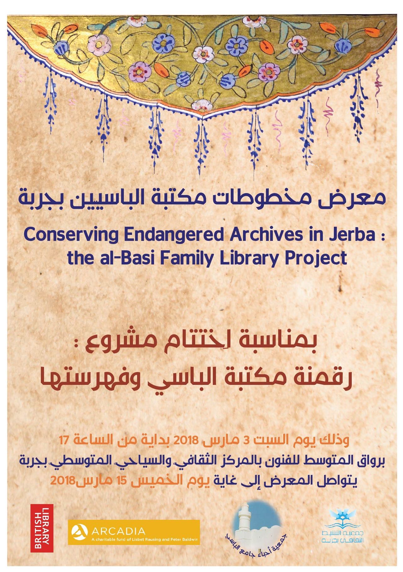 تأسّست مكتبة الباسيين في آخر القرن الثامن عشر الميلادي. من تأسيسها حتى القرن العشرين، كانت المكتبة عبارة عن مكتبة المدرسة المربوطة بجامع الباسيين في جربة ولكنها تنقلت إلى ملك عائلة الباسي فيما بعد. المكتبة قيمة وتتضمن حوال 200 مجلّدا تشتمل على نصوص دينية وغير دينية لعلماء إباضية وغير إباضية. مشروع رقمنة مكتبة الباسيين بدأ في عام 2017 بإعانة من مؤسّسة أركاديا في إطار “برنامج الأرشيفات المهدّدة بالانقراض” التابع للمكتبة البريطانية. تجدون أكثر معلومات حول المشروع هنا في موقع المكتبة البريطانية وفي المستقبل القريب صور المخطوطات كلها ستكون متواجدة في نفس الموقع. رأسنا المشروع أنا وزميلي الدكتور علي البوجديدي (أستاذ اللغة العربية وآدابها بجامعة قابس ومدير جمعية التنشيط الثقافي بجربة) . ترون في الفيديوات والصور الآتية مراحل المشروع المختلفة إضافة إلى فيديو من المعرض للعموم الذي نظّمناه عند إتمام المشروع في عام 2018