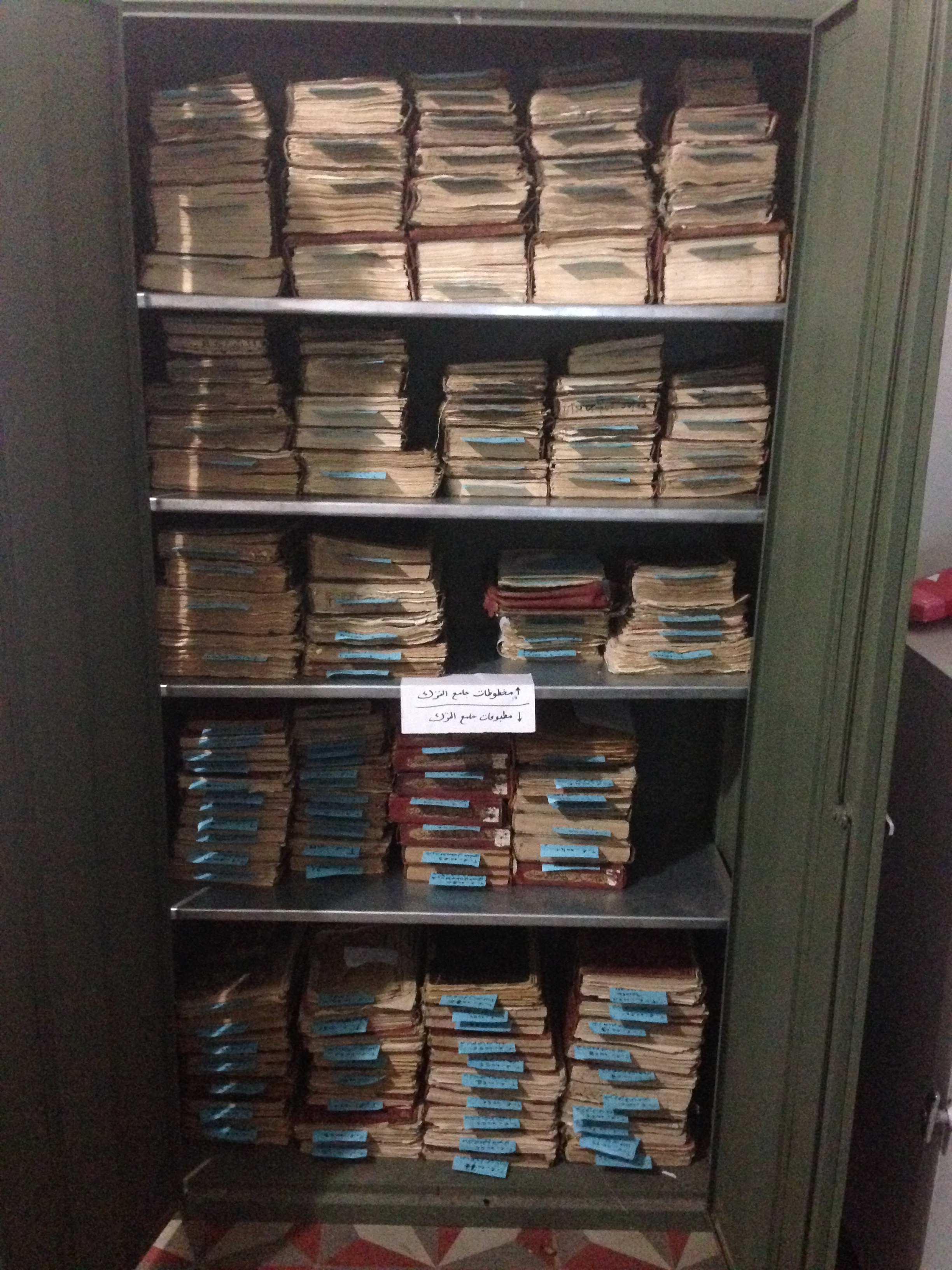 In 2015, I received funding from The Islamic Manuscript Association (TIMA) through Collection Care and Emergency Response Grant to carry out an inventory of a well known collection of Ibadi manuscripts in Djerba that belong to the Bin Yaʿqūb family. The library was assembled in the 20th century by Shaykh Sālim b. Yaʿqūb (d.1991), a prominent scholar and historian from Djerba. The project resulted in a published inventory of several hundred items in the Journal of Islamic Manuscripts (available for download here) and represented a preliminary step in preserving the library for the future. The images here show the library before the project began, during the process of inventory, and the final stages in which the items were placed in acid-free archival boxes and folders for storage.