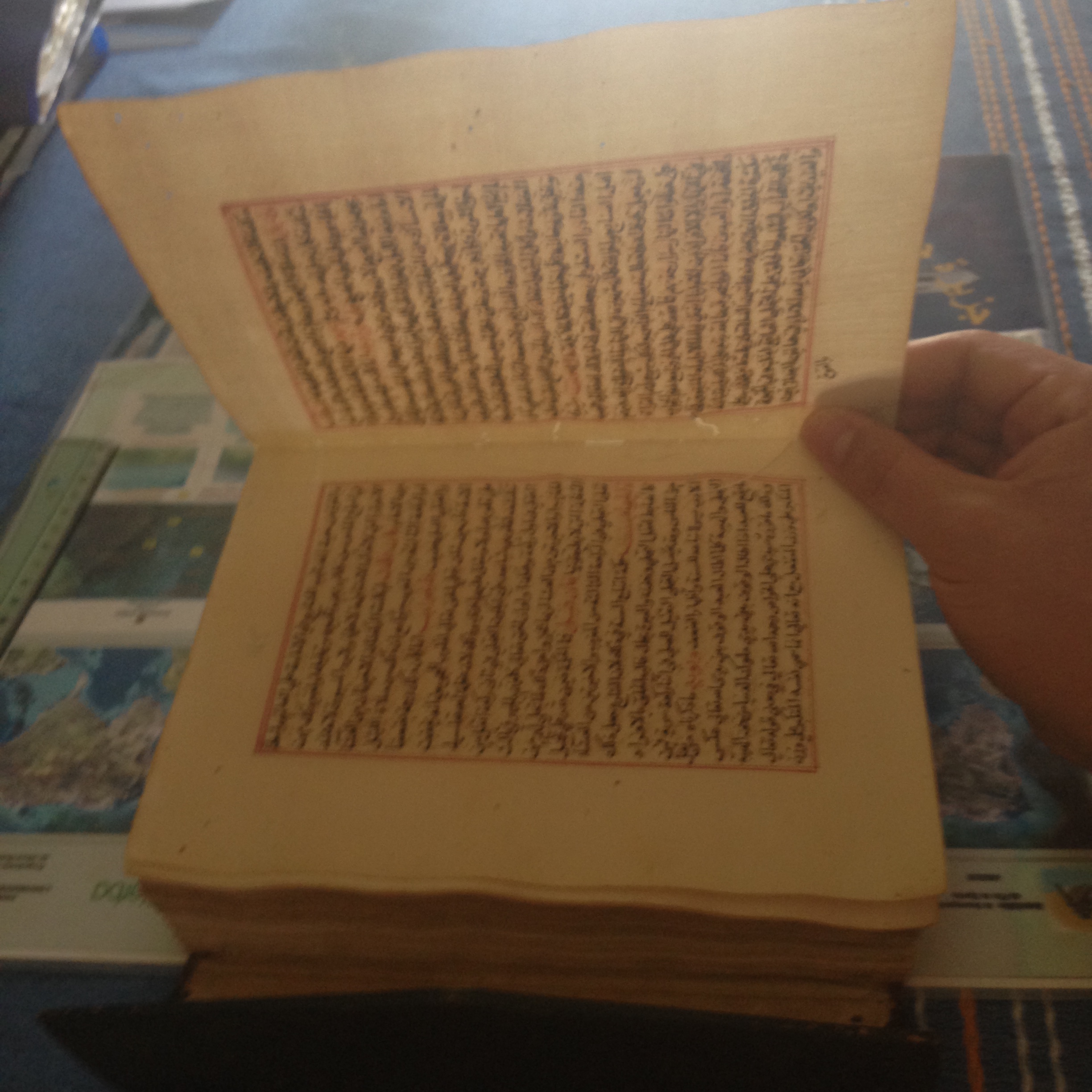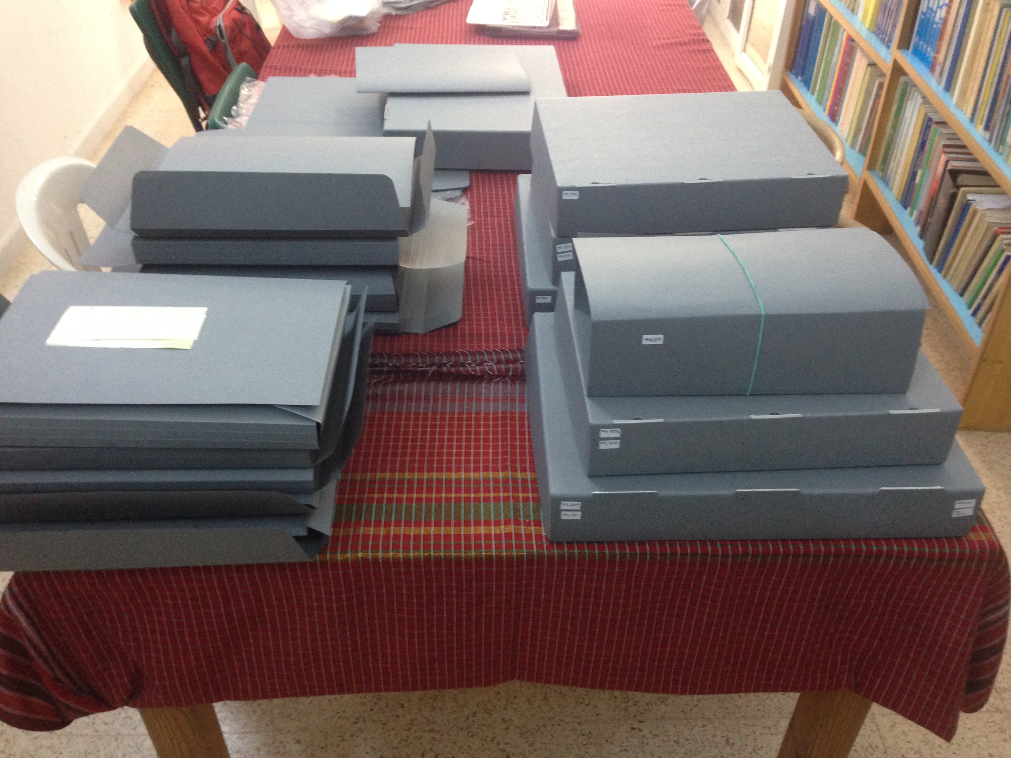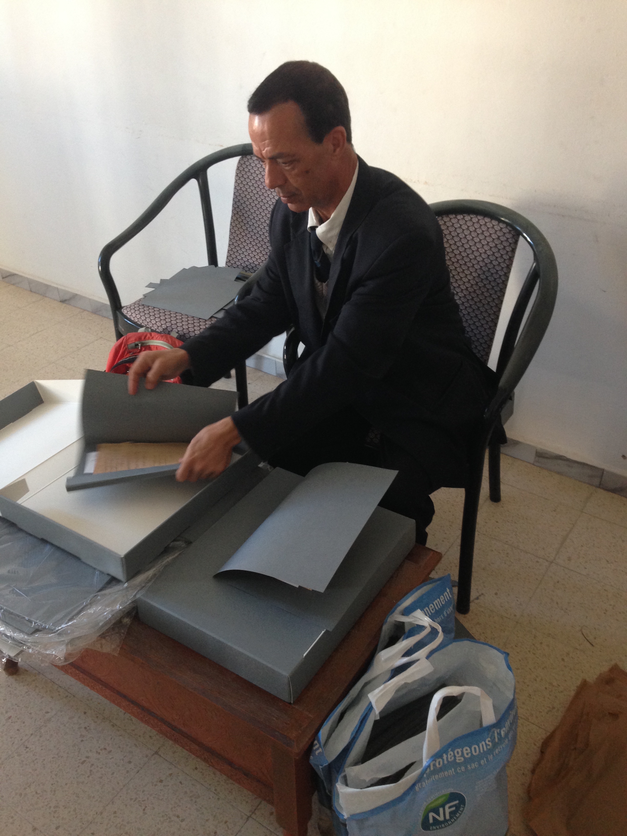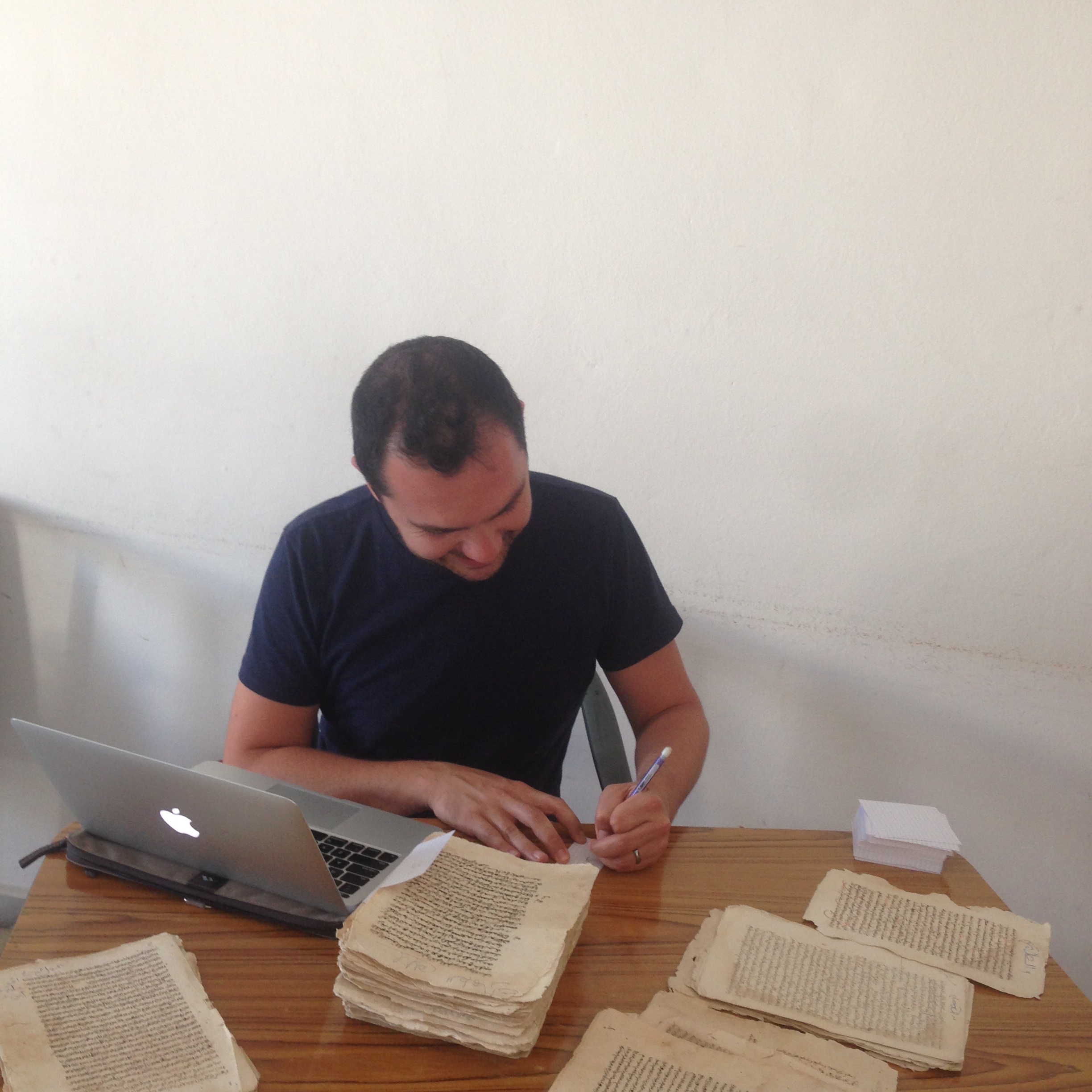 Over the course of a few summers of fieldwork in Djerba beginning in 2015 and ending in 2018, I regularly returned to a small collection of manuscripts held at the Association pour la sauvegarde de l’ île de Djerba (AASIDJ) in Houmet Souk. Eventually, this resulted in an inventory of the manuscripts volumes and some miscellaneous manuscript materials held there , which is now available on their website here. The images below show the process of the inventory, which included labeling the items and preparing physical descriptions of them. The final photo shows how I left the items in 2018, stored in acid-free archival boxes and folders .